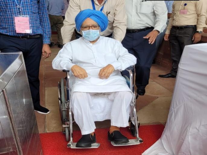 नई दिल्ली: भारत के पूर्व प्रधानमंत्री, डॉ मनमोहन सिंह, उपराष्ट्रपति चुनाव 2022 के लिए अपना वोट डालने के लिए शनिवार को व्हीलचेयर पर संसद पहुंचे। 89 वर्षीय कांग्रेस नेता को इस चुनाव में दूसरों की सहायता से अपना वोट डालते हुए देखा गया। इससे पहले देश के पूर्व प्रधानमंत्री ने पिछले महीने राष्ट्रपति चुनाव में भी व्हीलचेयर से संसद भवन पहुंचकर वोट डाला था।