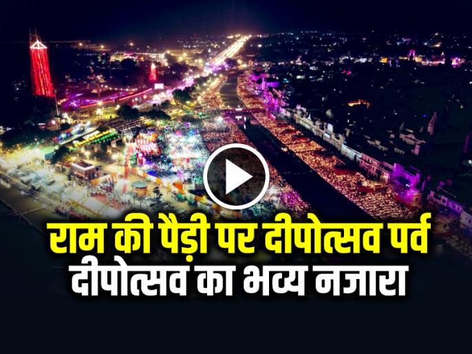 Video Deepotsav celebration in Ayodhya: उत्तर प्रदेश के अयोध्या को भव्य सजाया गया है। दीपोत्सव समारोह में अयोध्या में सरयू नदी के तट पर 25 लाख दीये जलाए गए हैं। छोटी दीपावली के अवसर पर अयोध्या में बुधवार को भव्य दीपोत्सव समारोह के तहत झांकियों की एक शोभायात्रा निकाली गई। मुख्यमंत्री योगी आदित्यनाथ के शासनकाल में अयोध्या में यह आठवां दीपोत्सव कार्यक्रम हो रहा है। रामायण के प्रसंगों को दर्शाती झांकियों में देशभर के शास्त्रीय नर्तकों की प्रस्तुति ने राम पथ पर अपना जादू बिखेरा। 18 विशेष झांकियां इस दीपोत्सव का मुख्य आकर्षण रहीं।