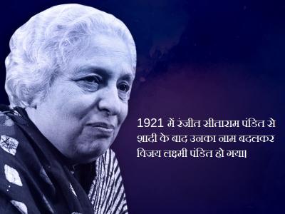 3- 1921 में रंजीत सीताराम पंडित से शादी के बाद उनका नाम बदलकर विजय लक्ष्मी पंडित हो गया।