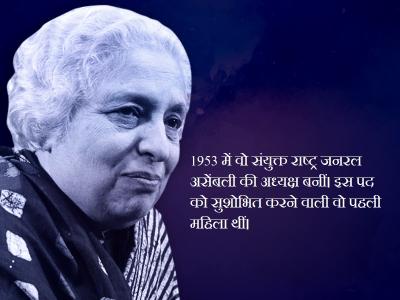 विजय लक्ष्मी पंडित संयुक्त राष्ट्र जनरल असेंबली की अध्यक्ष बनने वाली पहली महिला थीं।