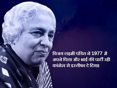 10- विजय लक्ष्मी पंडित ने 1977 में अपने पिता और भाई की पार्टी रही कांग्रेस से इस्तीफा दे दिया।