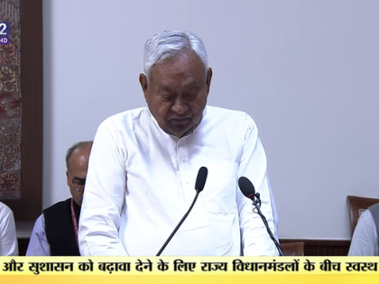 नई दिल्लीः बिहार के मुख्यमंत्री नीतीश कुमार ने राज्यसभा सदस्य के रूप में शपथ ली। 14 फरवरी को बिहार के सीएम पद से इस्तीफा देंगे। बिहार सरकार से उनके शीघ्र ही अलग होने का संकेत मिला और बिहार में नई सरकार के गठन का मार्ग प्रशस्त हुआ। एक संक्षिप्त समारोह में राज्यसभा अध्यक्ष सीपी राधाकृष्णन ने उन्हें शपथ दिलाई। शपथ ग्रहण समारोह में बिहार के उपमुख्यमंत्री विजय कुमार सिन्हा और सम्राट चौधरी, भाजपा अध्यक्ष जेपी नड्डा, वित्त मंत्री निर्मला सीतारमण, कानून और न्याय राज्य मंत्री अर्जुन राम मेघवाल सहित कई वरिष्ठ राजनीतिक नेता उपस्थित रहे।
