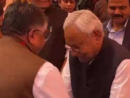 वीडियो में दिख रहा है कि रविशंकर प्रसाद ने कार्यक्रम स्थल के गेट पर ही नीतीश कुमार का स्वागत किया। इसके बाद तमाम नेता साथ चलते हुए कार्यक्रम के पंडाल के भीतर पहुंचे। सब आपस में बात कर ही रहे थे कि नीतीश कुमार अचानक से रविशंकर प्रसाद के पैरों की ओर झुके। उनके दोनों हाथ रविशंकर प्रसाद के पैरों की ओर जा रहे थे कि रविशंकर एक्शन में आए।