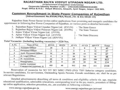 बिजली कंपनियांः जिन कंपनियों ने भर्तियां निकाली हैं उनमें राजस्थान राज्य विद्युत उत्पादन निगम लिमिटेड, राजस्थान राज्य विद्युत प्रसारण निगम लिमिटेड, जयपुर विद्युत वितरण निगम लिमिटेड और जोधपुर विद्युत वितरण निगम लिमिटेड शामिल हैं।