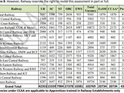 आरआरसी (RRC)ग्रुप-डी में 1,03,769 भर्तियां के लिये आवेदन करने की आखिरी तारीख 12 अप्रैल, 2019 हैं। अगर पिछले साल की बात की जायें तो ग्रुप डी में करीब 63,000 भर्तियां रेलवे द्वारा निकाली गयी थी। इस साल रेलवे रिक्रूटमेंट सेल (आरआरसी ) पूरी भर्ती का संचालन कर रही हैं जबकि पिछले साल रेलवे भर्ती बोर्ड (आरआरबी) ने ग्रुप डी की भर्तियों का संचालन किया था।