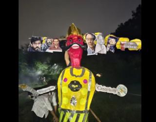 भारत : Delhi: रावण दहन को लेकर JNU में बवाल, रावण के पुतले पर उमर खालिद और शरजील इमाम की फोटो से 2 गुट भिड़े