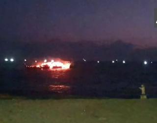 भारत : पोरबंदर बंदरगाह पर एक मालवाहक जहाज में आग लगी, देखिए वीडियो