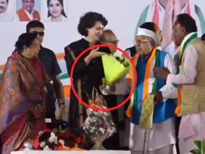 वहीं, इस पल को कैमरे में कैद कर लिया गया है, असल में मध्य प्रदेश में प्रियंका गांधी चुनाव के तहत रैली में शामिल होने पहुंची थीं। इस क्रम में प्रियंका गांधी का स्वागत करने के लिए रैली में आए कार्यकर्ता उन्हें गुलदस्ते और कई तरह की चीजें उपहार के रूप में दे रहे थे। लेकिन, इस बीच खाली गुलदस्ते के साथ आए कार्यकर्ता से प्रियंका ने पूछा कि ये क्या है, तो वो भी हंसने लगे। बिना गुस्साए उन्होंने इसे स्वीकारा। इसके बाद जिसने देखा वो हंसता रह गया।