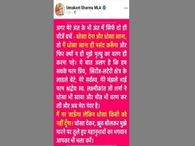 Madhya Pradesh:"पूर्व मंत्री ने धोखा भी खाया, मौत भी वरण कर ली, अब मेरा नंबर", भाजपा विधायक की पोस्ट ने मचाई खलबली