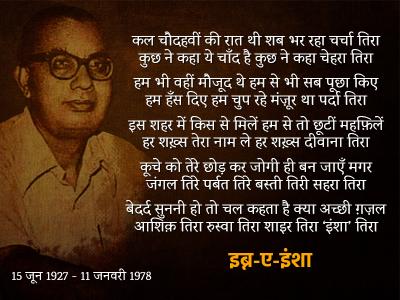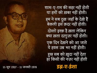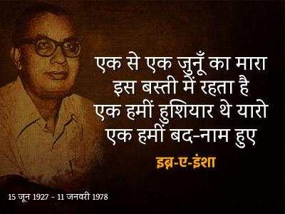 15 जून 1927 को जन्मे इब्न-ए-इंशा ने उर्दू शायरी में एक अलग मुकाम बनाया।