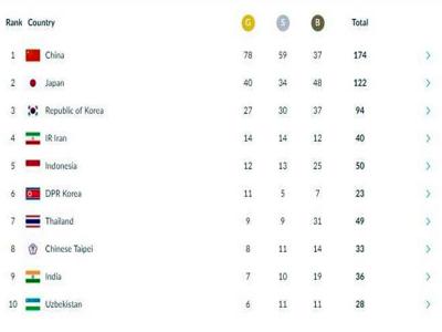 - भारत एशियाई खेलों के 8वें दिन कोई स्वर्ण पदक नहीं जीत पाया, लेकिन पांच रजत पदक जीतने में सफल रहा। साथ ही दो कास्य भी भारत की झोली में आये। देश सात स्वर्ण, 10 रजत और 19 कांस्य पदक के साथ कुल 36 पदक जीतकर तालिका में नौवें स्थान पर है।