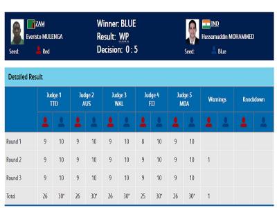 बॉक्सिंग से एक और मेडल पक्का। हुसामुद्दीन मोहम्मद 56 किलो कैटिगरी के क्वॉर्टर फाइनल में जाम्बिया के एवेरिस्टो मुलेंगा को हराकर सेमीफाइनल में पहुंचे। मनोज कुमार भी 69 किलोग्राम वर्ग के सेमीफाइनल में पहुंचे।