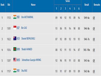 शूटिंग (पुरुष): भारत के ओम प्रकाश और जीतू राय ने 50 मीटर पिस्टल स्पर्धा के फाइनल में जगह बनाई।