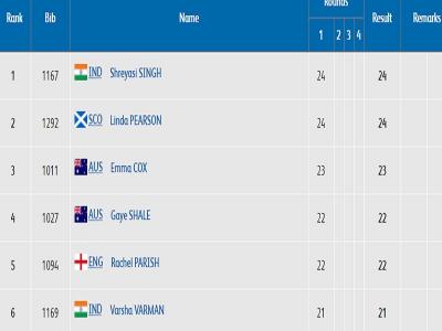 शूटिंग: महिलाओं की डबल ट्रैप स्पर्धा में भारत की श्रेयसी सिंह ने गोल्ड मेडल जीता। श्रेयषी ने शूटऑफ में ऑस्ट्रेलिया की एमा कॉक्स को पीछे छोड़ा। भारत की वर्षा बर्मन चौथे स्थान पर रहीं।