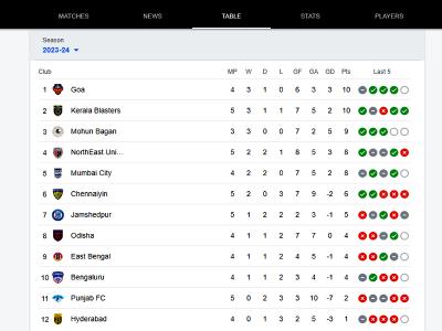 मुंबई की टीम अंक तालिका में 8 अंक लेकर 5वें स्थान पर है। इंडियन सुपर लीग (आईएसएल) के आगामी 2023-24 सत्र में पंजाब की टीम 2 अंक लेकर 11वें स्थान पर है। पंजाब की टीम को जीत के साथ खाता खोलना बाकी है। मुंबई की टीम ने 2 जीत और 2 ड्रा के साथ अच्छी स्थिति में है।
