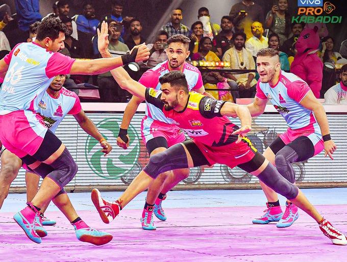Pro Kabaddi League 2022: रेडर अर्जुन देशवाल (13 अंक) के दमदार खेल से जयपुर पिंक पैंथर्स ने प्रो कबड्डी लीग (पीकेएल) के मुकाबले में बुधवार को यहां बेंगलुरु बुल्स को 45-25 के बड़े अंतर से हराया। अर्जुन के अलावा रेडर वी अजीत (छह अंक) और डिफेंडर लकी शर्मा (छह अंक) ने भी जयपुर की टीम के लिए शानदार प्रदर्शन किये।