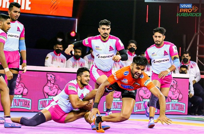 Pro Kabaddi PKL 2022:जयपुर पिंक पैंथर्स ने अपने स्टार रेडर अर्जुन देसवाल (17 अंक) के बेहतरीन प्रदर्शन से मंगलवार को यहां प्रो कबड्डी लीग (पीकेएल) में यू मुंबा को 44-28 से पराजित किया।