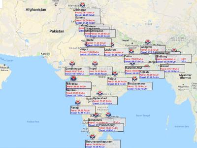 मैप के जरिए देखें देश के विभिन्न राज्यों में तेल की कीमत-