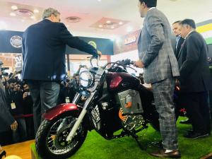 1 / 6ऑटो एक्सपो 2018 के दूसरे दिन UM Motorcycle ने पहली इलेक्ट्रिक गियर बाइक से पर्दा उठा दिया है। 2 / 6कंपनी ने इस बाइक का नाम THOR (थोर) रखा है।3 / 6कयास लगाए जा रहे हैं कि जल्द ही UM Renegade Thor भारत की सड़कों पर धमाल मचाती नजर आएगी। 4 / 6यूएम मोटर्स ने भारत की सबसे पहली इलेक्ट्रिक क्रूजर बाइक UM Renegade Thor में 5 स्पीड गियर बॉक्स दिए हैं।5 / 6इसमें 30 किलोवॉट की पॉवरफुल मोटर दी गई है जो 8 हजार आरपीएम के साथ 70NM/RPM का टॉर्क जनरेट करती है।6 / 6रफ्तार के साथ सड़क पर मजबूत पकड़ के लिए इसमें 17 इंच एलोइ फ्रंट रिम और 15 इंच एलोइ के रियर रिम दिए गए हैं।