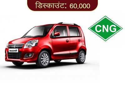 इस कार के मारुति वैगन आर CNG मॉडल पर 60,000 रुपये तक का डिस्काउंट मिल रहा है।