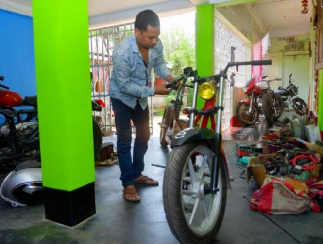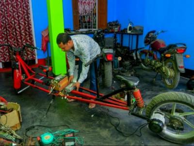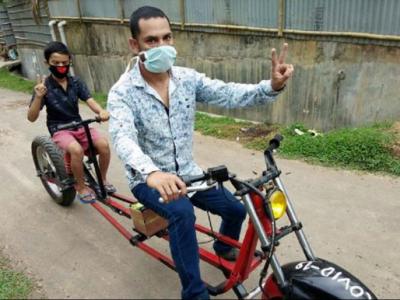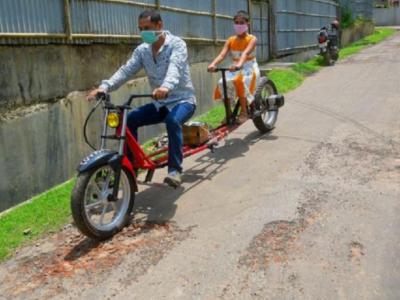 कोरोना वायरस से बचाव के लिए सबसे ज्यादा फिजिकल डिस्टेंस (एक-दूसरे से शारीरिक दूरी) बनाए रखने पर जोर दिया जा रहा है। त्रिपुरा की राजधानी अगरतला में एक व्यक्ति ने कोरोनो वायरस महामारी के दौरान इसी दूरी के महत्व को बताने के लिए एक ऐसी इलेक्ट्रिक मोटरसाइकिल बनाई है जिसमें चालक और सवार के बीच एक मीटर की दूरी रहती है।