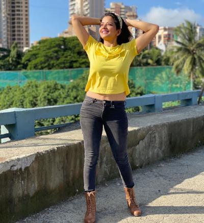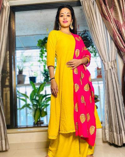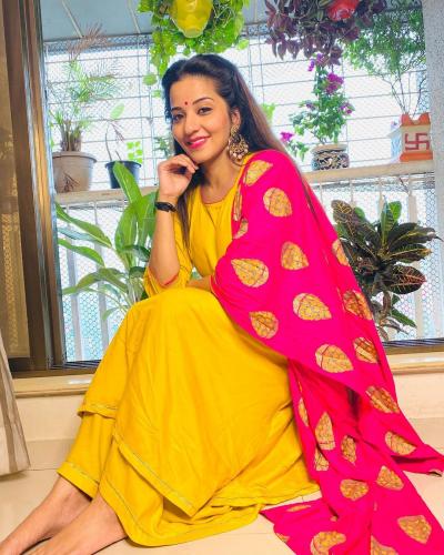 मोनालिसा ने अपनी लेटेस्ट तस्वीरों में पीले रंग का सूट पहना हुआ है। (फोटो: इंस्टाग्राम)
