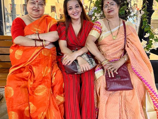 तस्वीरों में मोनालिसा मां के साथ काफी खुश नजर आ रही हैं। (फोटो इंस्टाग्राम)