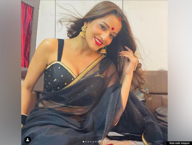 हाल ही में मोनालिसा ने ब्लैक साड़ी में कुछ तस्वीरें इंस्टाग्राम पर शेयर की हैं जो बहुत तेजी से वायरल हो रही हैं।