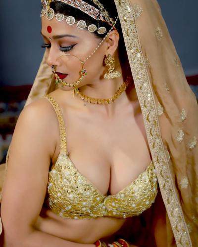 नम्रता मल्ला ने गोल्डन लहंगा और हैवी ज्वैलरी के साथ मेकअप किया हुआ है, नम्रता की इन तस्वीरों को काफी पसंद किया जा रहा हैं। (फोटो: इंस्टाग्राम)
