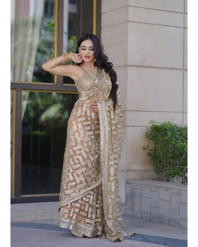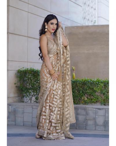 क्रीम कलर की साड़ी में नेहा मलिक का लेटेस्ट फोटोशूट काफी वायरल हो रहा है। (फोटो: इंस्टाग्राम)