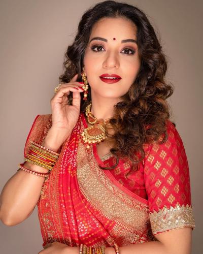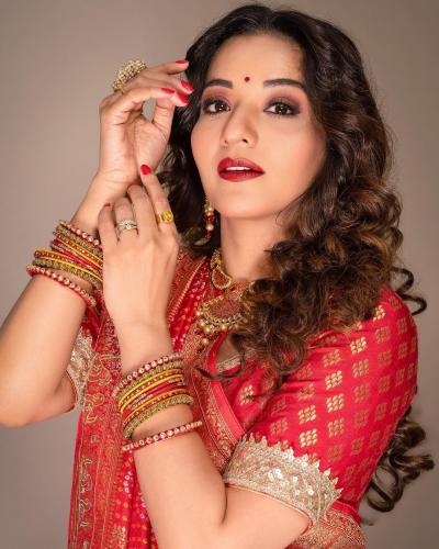 लाल जोड़े में दुल्हन की तरह सजीं दिखीं मोनालिसा, तस्वीरें देख फैंस के उड़े होश