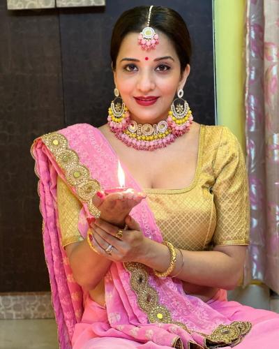 मोनालिसा एक तस्वीर में हाथों में दिया लिए पोज देती भी नजर आ रही हैं। (फोटो: इंस्टाग्राम)
