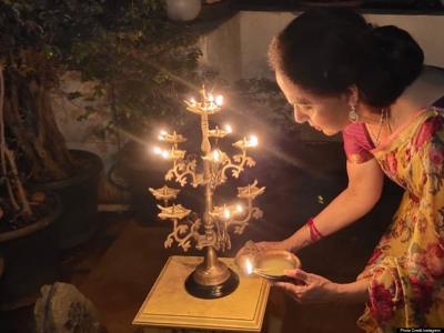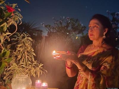 हेमा मालिनी ने दीया जलाते हुए तस्वीरें अपने इंस्टाग्राम पर शेयर की हैं.