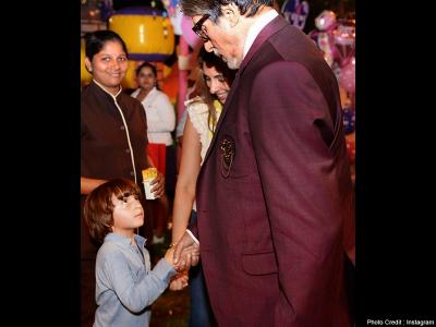आराध्या बच्चन की बर्थडे पार्टी में शाहरुख का बेटा अबराम भी पहुंचे थे। जब वह बिग बी से मिला तो उसके चेहरे के एक्सप्रेशन देखने लायक थे। अमिताभ ने उन्हीं एक्सप्रेशन के साथ फोटो शेयर की है