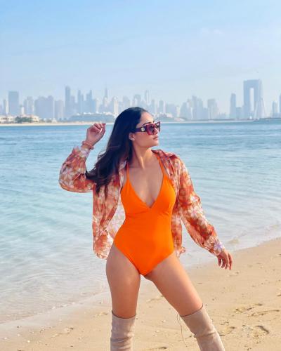 त्रिधा चौधरी कभी समंदर किनारे तो कभी पूल में सिजलिंग लुक में फोटोशूट करवाती नजर आती हैं। (फोटो इंस्टाग्राम)