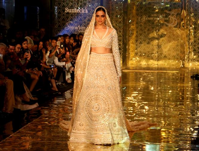 पॉपुलर डिजाइनर जोड़ी अबू जानी और संदीप खोसला के लिए दीपिका ने रैंप वॉक किया है