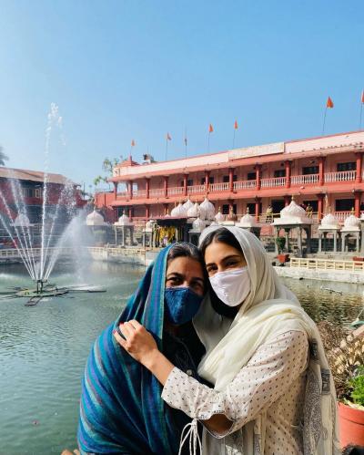 बॉलिवुड ऐक्ट्रेस सारा अली खान शनिवार को मां अमृता सिंह के साथ महाकाल के दर्शन करने उज्जैन पहुंची। हैं। (फोटो: इंस्टाग्राम)