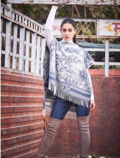 तस्वीरों में देखा जा सकता है कि सारा अली खान ने व्हाइट बुलन टॉप, डेनिम जीन्स और बूट्स पहने हुए हैं, यह ड्रेस उन पर काफी सही लग रहा है।