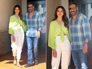 1 / 6अजय देवगन इन दिनों अपनी फिल्म दे दे प्यार दे के प्रमोशन में बिजी हैं। 2 / 6इसी के प्रमोशन के दौरान मुंबई में राकुल प्रीत और सिंघम को स्पॉट किया गया। 3 / 6ग्रीन क्रॉफ टॉप और व्हाइ पैंट में राकुल बेहद खूबसूरत लग रही थी। 4 / 6वहीं अजय देवगन ब्लू शर्ट और पैंट में बहुत हैंडसम लग रहे थे। 5 / 6दे दे प्यार दे कि स्टोरी है एज गैप और मैरिड लाइफ पर। 6 / 6कॉमेडी फिल्म दे दे प्यार दे 17 मई को रिलीज होगी।