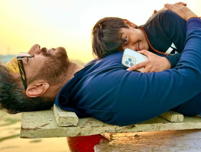 लेटेस्ट तस्वीरों में अजय देवगन वाराणसी के घाट पर बेटे युग संग सुकून के पल बिताते नजर आ रहे हैं। (क्रेडिट Instagram)
