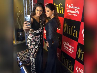 अपने स्टैच्यू के साथ काजोल ने सेल्फी लीं और अपनी मां की स्टैच्यू को देर न्यासा दंग रह गई।