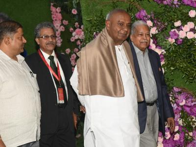 पूर्व प्रधानमंत्री एच डी देवगौड़ा भी शादी में दिखे