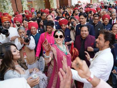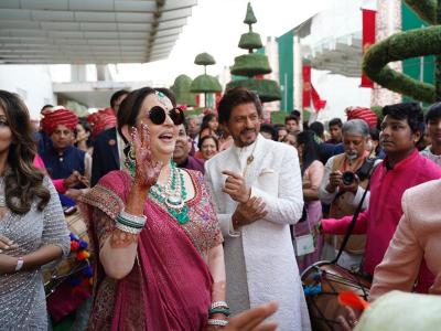 शाहरुख खान अपनी पत्नी गौरी खान और नीता अंबानी के साथ डांस करते दिखे