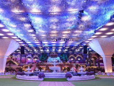 यह केंद्र अंबानी परिवार द्वारा चलाए जा रहे एक स्कूल से मामूली दूरी पर बना हुआ है जहां आकाश और श्लोका ने साथ में पढ़ाई की थी। ‘जियो वर्ल्ड सेंटर’ के भीतर बने कॉरिडोर में बारात के लिए व्यवस्था की गई थी जहां बॉलीवुड संगीतकार विशाल एवं शेखर के पैर थिरकाने वाले गानों पर लोग झूम रहे थे।