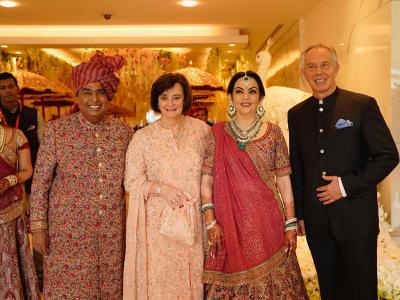 ब्रिटेन के भूतपूर्व प्रधानमंत्री टोनी ब्लेयर भी पत्नी चेरी के साथ पहुंचे
