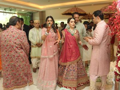 आकाश अंबानी की बहन ईशा अंबानी और जीजा आनंद पीरामल भी शादी में मौजूद रहे।