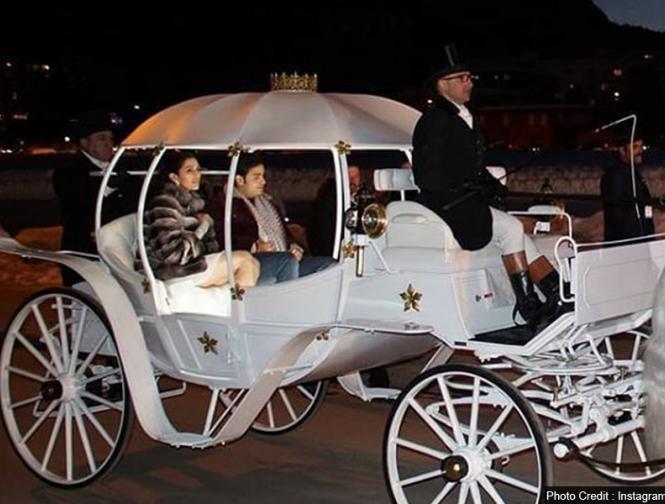 आकाश और श्लोका एक एंटीक बग्घी की सवारी करते नजर आ रहे हैं।