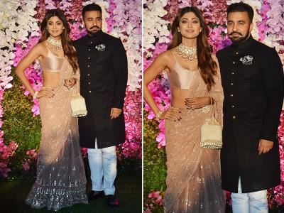 शिल्पा शेट्टी पति राज कुंद्रा के साथ पोज देती आईं नजर