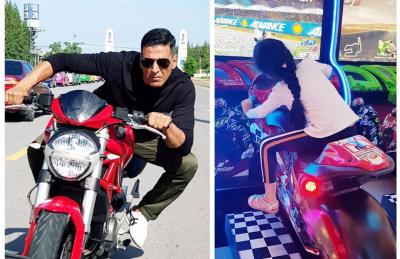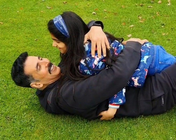 इस फोटो में अक्षय कुमार बेटी के साथ मस्ती करते नजर आ रहे हैं। (फोटो: इंस्टाग्राम)