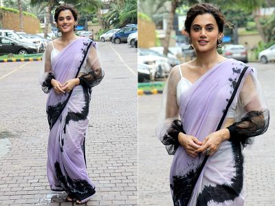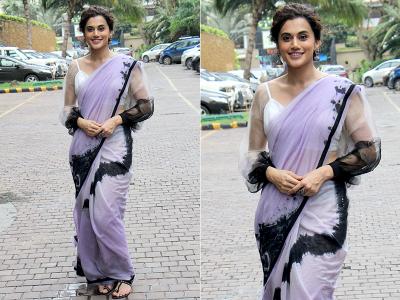 तापसी पन्नू का बोल्ड साड़ी में अलग अवतार 'मिशन मंगल' के प्रमोशन पर दिखा